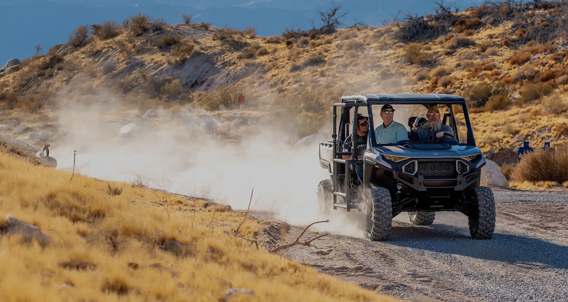 Navigate rugged desert terrain in a UTV while engaging targets in real time.